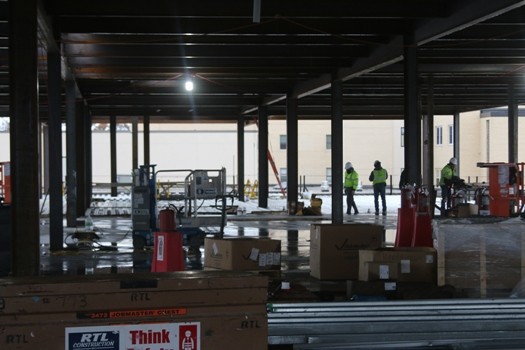 The recent weather has been a hindrance, according to Toso, but the construction schedule has been timed right that it hasn’t stopped production to date.  “We were fortunate enough to have the schedule work in our favor where we had a lot of our blacktop down for our parking lots and a lot of our concrete foundations in and our class five infill in the inside of the building,” said Toso.  “So, the rain and the snow has been a hindrance, but it hasn’t stopped production out here.  As much as we can take it, the guys are out there working.  If it gets too rough, they’ll shut down for the day, but for the most part, we’ve been able to keep on pretty well.  So, for schedule, the rain has impacted us, but six weeks ago, we said we were going to set that final beam on October 15, and here we are.”
