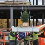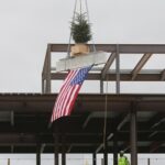 The 20,000 man-hours already put into the construction is the equivalent of more than 9.5 years of work for a single individual. The tree lifted into place with the beam is a tradition dating back to when structures were built entirely of wood. “We always put a tree on the top of it,” said Toso. “In the olden days, if you will, construction was primarily out of wood, so the tree was symbolic to the tree goods for all of the fallen trees it took to build the structure. Things have changed over time. Structures are primarily metal, but the tradition carries on.”
