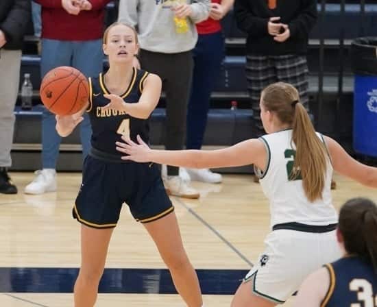 Roseau had a strong start with Sophia Olson scoring the first baskets of the game for a 4-0 lead. Crookston responded with five points with a Naomi Johnson basket in the paint and an Isabelle Smith three pointer to take a 5-4 lead.