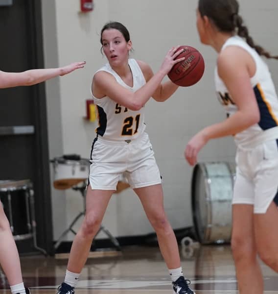 Something that hurt the Storm the last time the two teams met was three-pointers, and Sacred Heart’s Isabel Vonesh came out and knocked down two early ones for the Eagles. But even with those three-pointers, Stephen-Argyle was able to get out to an early 8-7 lead with four points from Isabelle Westman, a Live Efta layup, and Regan Swanson jumper. After the teams traded a couple of baskets, the score was tied at 11-11 midway through the first half. Sacred Heart would start to impose their will, and thanks to some full-court pressure and offensive rebounds, the Eagles would rattle off a 14-2 run to go in front 25-13. Lydia Riskey and Alexis Lawrence would pace the run for Sacred Heart as the two eighth-graders came off the bench and combined for 10 first-half points. The Storm ended the first half on a much-needed 6-0 run thanks to good free throw shooting, and the Eagles took a 25-19 lead into the halftime break. Isabel Vonesh led the way for Sacred Heart with 10 points in the first eighteen minutes, while Regan Swanson had 7 for the Stephen-Argyle. The other big stat from the opening half was that the Eagles had 14 points off turnovers while the Storm had just 6.