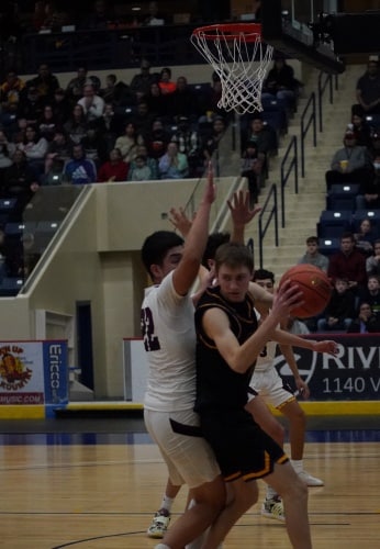 Cass Lake-Bena would build off of their momentum at the end of regulation and start the OT with a 4-0 scoring run to take a 59-55 lead with 3:00 left. Kobe Tomkinson would respond with a layup, and after a stop, Sam Gapp would bury a three to give Sacred Heart the lead back with 1:30 left. Cass Lake-Bena would then get fouled and knock down a free throw to tie the game at 60-60 with 1:12 on the clock. Sacred Heart would have an opportunity to win the game, but the Panthers would come up with a steal at the end of the OT, sending us to another four-minute overtime tied at 60-60.