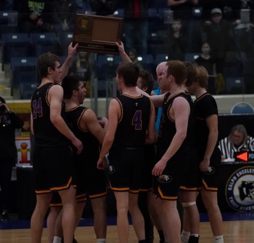In the second overtime, it was the Eagles striking first with two free throws from Ethan Arntson, but the Panthers would quickly counter with a layup to tie the game at 62-62. On the next Sacred Heart possession, Kobe Tomkinson would bury another three and the Eagles were back in front 65-62. Sacred Heart would get another stop, forcing Cass Lake-Bena to foul, and sending Tomkinson to the line where he would make both free throws giving the Eagles a 67-62 lead with just 1:06 left to play. Cass Lake-Bena would mount another late comeback and get an and-one to pull within two points at 67-65 with 26.8 seconds remaining. After Kobe Tomkinson would split two free throws, the Panthers would score another layup giving Sacred Heart a slim margin at 68-67 with 20 seconds left. Ethan Arntson would be fouled with 14 seconds, and make one of two free throws, giving the Panthers the basketball down 2 points and a chance to tie or win the game. Cass Lake-Bena would get two shots at it, but both would fall short, and Josiah Sundby would grab the rebound and run off the rest of the clock sending Sacred Heart to the State Tournament as Section 8A Champions.