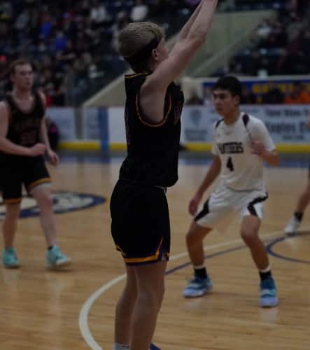 It took less than a minute into the second half and Cass Lake-Bena was on a 6-0 run to pull within 5 points at 30-25. Sacred Heart settled down and after baskets from Sam Gapp and Ethan Arntson, followed by 1 free throw from the Panthers, the Eagles were back in control by eight points at 34-26 with 13:10 remaining. Cass Lake-Bena started to find its groove offensively and would proceed to go on a 19-5 run to take a 45-39 lead with 7:00 left in the game. Both teams had runs throughout the game and fought back, and this time was no different for Sacred Heart. The Eagles would counter with 12-5 run with scores from Kobe Tompkinson, free throws from Sam Gapp, and a Gapp layup to claim the lead at 51-50 with 2:20 left in the game. After a defensive stop, the Eagles would come down and get a layup from Kobe Tompkinson with 36 seconds remaining to go up 53-50, and after another stop, Ethan Arntson would make a free throw to take a 54-50 lead with 26 seconds left. Cass Lake-Bena wouldn’t go quietly, and after knocking down a three, they would foul the Eagles sending Kobe Tomkinson to the free-throw line with 10 seconds left. Tomkinson would split the pair of free throws, giving the Eagles a 2-point lead. Cass Lake-Bena would head the other way, have a three-point shot get tipped that appeared to end the game, but the ball went right to a wide-open player underneath the basket and the Panthers would score at the buzzer sending the game into overtime.