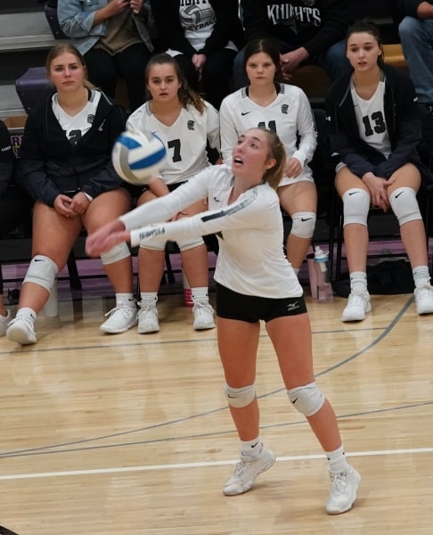 It was all Knights early coming out and going on a 6-1 run to start the set, forcing an Eagles timeout. Peyton Hoffman was leading the charge early with two kills. Sacred Heart would settle in and the slow start may have been due to not playing for over a week. The Eagles would score six of the next seven points to tie the set at 7-7. The Knights pulled back in front momentarily at 9-7, but a 4-0 Sacred Heart run capped off by back-to-back kills from Emma Anvinson gave them the lead back at 11-9. The two teams would trade the lead and points for a while with neither team taking a big lead. The two teams seemed to trade points until Sacred Heart found a slight edge in front 18-16. The Eagles would get two straight points on a kill and block from Audrey Zavoral, and ride that momentum all the way to a 22-16 lead. The Knights wouldn’t quit and would go on a 3-0 run getting contributions from multiple players. After an Eagles point gave them the lead, the Knights would storm all the way back scoring the last six points to steal the opening set 25-23. Halle Reitmeier would tie the set at 23-23 with a kill, Sophia Nesvig would give the Knights the lead, and then Peyton Hoffman would end things with an ace.