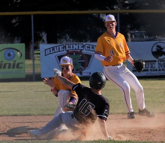 East Grand Forks needed seven runs to tie and eight to win heading into the last half inning. They got a good start with back-to-back singles, but on the second single Mike Gapp, the Eagles’ left fielder, threw out the lead runner at third for the first out. Then, another solid defensive play from the Eagles, a 6-4-3 double play ended the inning and the game giving Sacred Heart the victory by a score of 17-10. “Unfortunately we’ve had a couple of these wild games. Too much of it has been our own doing so we need to clean that up,” added Coach Bethke. “As far as them not quitting, they’ve done a nice job of that.