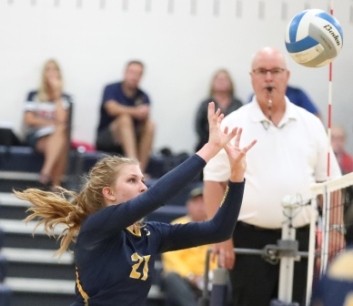 The second set was tied at 2-2 before Sacred Heart went on an 8-1 run behind three Ivy Edwards kills for a 10-3 lead. “We were waiting for somebody else to get the ball,” said Pirate Coach Stopa. Sacred Heart built a 10 point lead a few points later after back-to-back kills by Maddi Mitzel and the Eagles cruised to a 25-13 victory for a 2-0 lead in the match. “When the ball is on our side of the net we want to take care of the ball and we did,” said Eagle Coach Vonasek.
