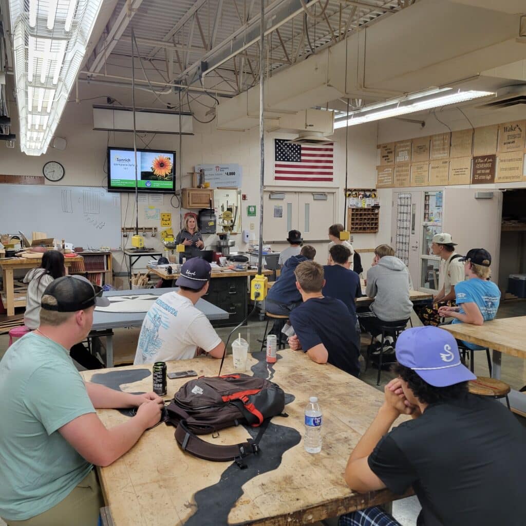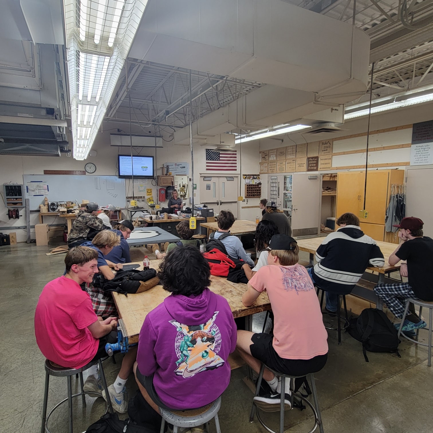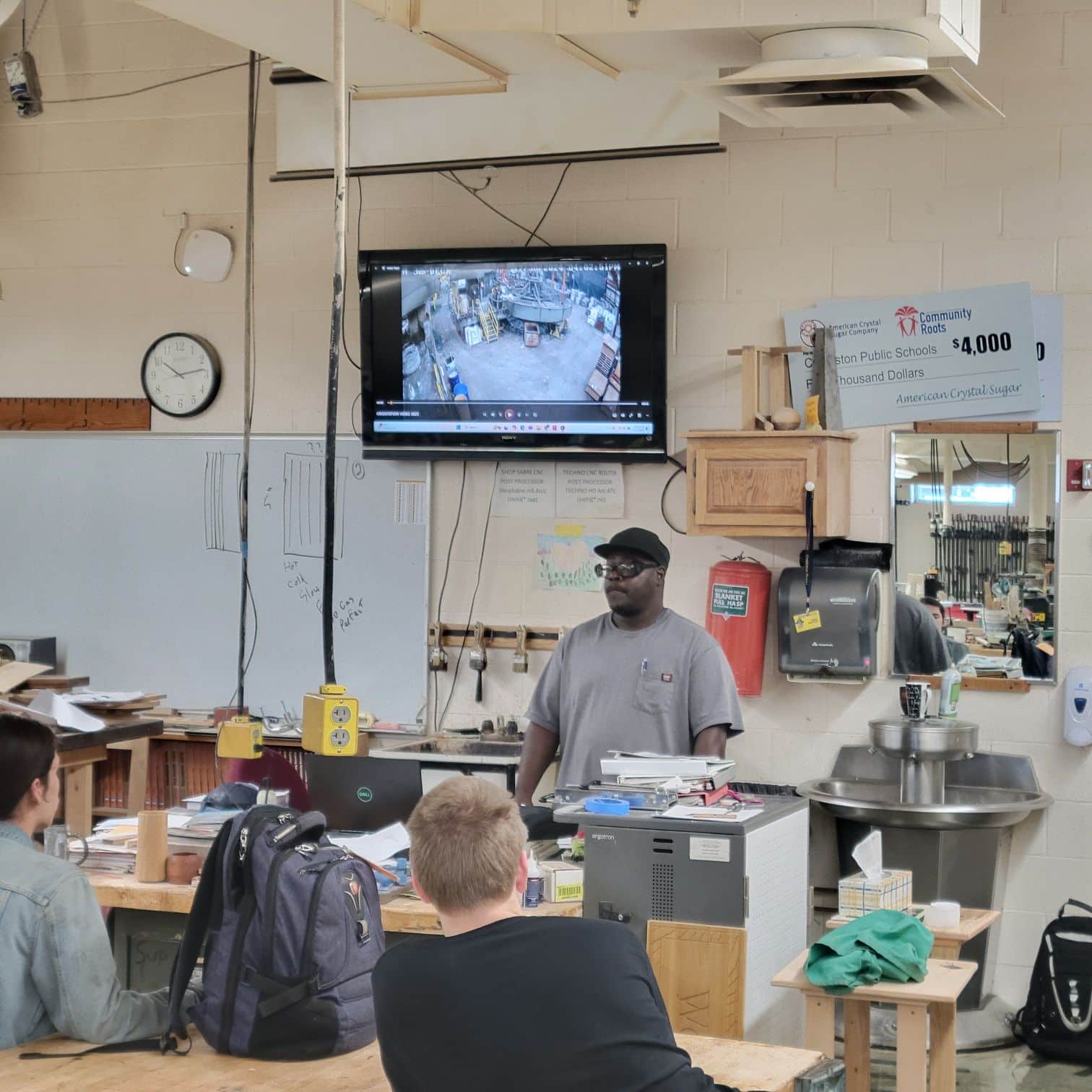 Becky Kofoed, the Director of HR and Safety from Sunrich Products, a sunflower producer in Crookston, and Charles Edwards, the Safety Coordinator from DEE Manufacturing, an aluminum foundry and machine shop in Crookston. “Kofoed and Edwards took time away from their companies to visit with my students about safety practices that they have in place at the businesses they work for. Becky visited my Intro classes in Woods and Welding (3 classes), and Charles visited my 2nd year classes in Woods and Welding (2 classes),” said Mr. Oliver. “Becky spoke about what safety looks like at Sunrich, employee safety training, workplace hazards and preventive measures, required PPE, overview of accidents, and what the process looks like if someone gets hurt on the job. Charles spoke about the hazards that exist at DEE, the common injuries, types of training employees receive, and the required PPE.”