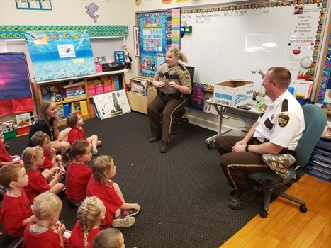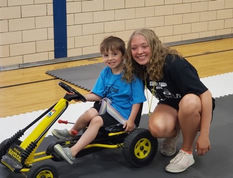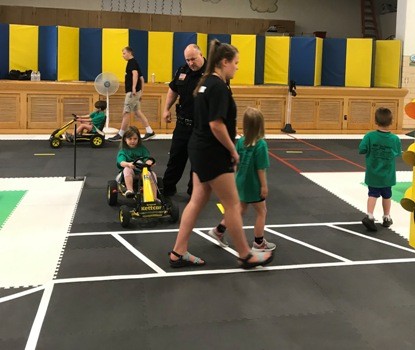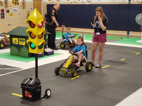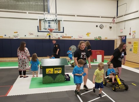The children learn about safety in a variety of settings said Olson, while also getting some help driving around town in Washington’s gym from the Crookston Police Department. “Safety Town is a comprehensive safety program for children who are age eligible to enter kindergarten,” explains Olson. “We cover a variety of safety topics from home safety, bicycle safety, gun safety, farm safety, to 911 awareness when and when not to dial 911. They get to tour a fire engine, an ambulance, and a police car. We have our on the town, where we transform our gym here at Washington School into its own little city with some roads, driveways, sidewalks, and buildings they can sit by and read. The children learn hand signals. They also learn how to walk around the town along with driving safely. So some traffic safety with a working stoplight, a railroad track along with lots of crosswalks around our town. And the Crookston Police Department is in there all week helping the children in the town.”