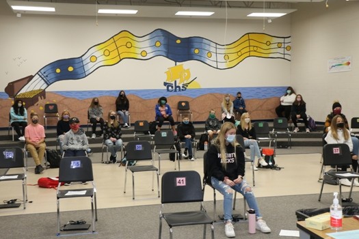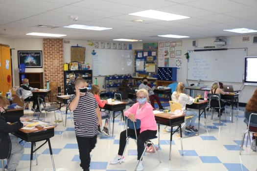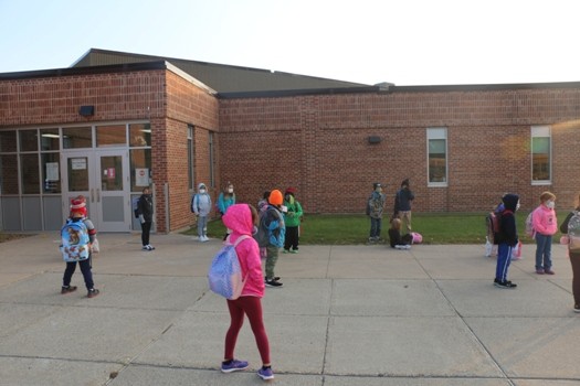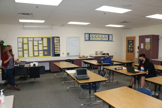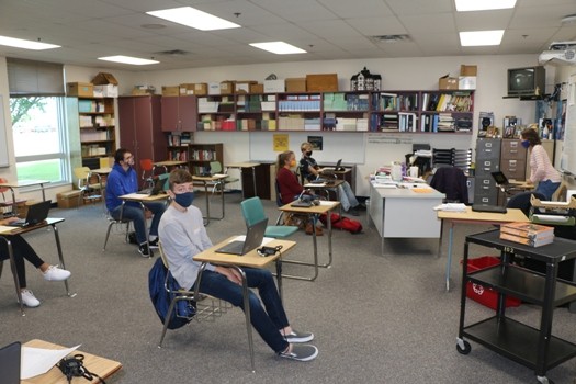 High School Math Teacher Steven Kofoed said the students were good before school following the required mask and social distancing guidelines while hoping technology will work until all of the upper grades can hopefully return to in-person learning every day. “The kids have been pretty good with the first half an hour they were here beforehand,” said Kofoed. “Keeping their masks on, and distance, and doing the things we’re going to ask them to do. It’s going to be kind of flexibility and roll with the punches as we attempt to zoom five kids in my first class. Hopefully, they have it all figured out first hour, so when they get to me second hour, we’re good to go. That’s going to be those first few weeks for sure. What works one day might not work the next. Technology, hopefully, is going to be on our side and make everything go as smoothly as we can. We’re definitely happy to have kids back in the building, see some faces and have them show up saying we’re super happy to be here. Or at the same time, we’re not really happy to be here, but at the same time, there is a smile behind that mask saying I’m happy to be here, but god, I wish I was still sleeping.”