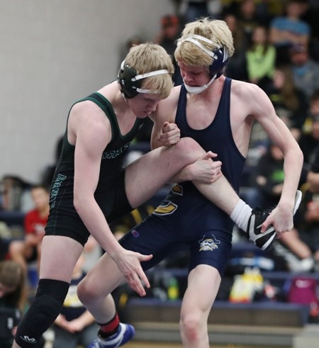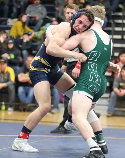 #9 ranked Lukas Meier (152 pounds) wrestles #1 ranked Chandler Mooney of Roseau in the championship match.  Neither wrestler was able to score in the first period, but Mooney started the scoring in the second period with an escape a few seconds into the period.  He added a takedown for a 3-0 lead with 1:15 left in the period.  Meier was able to score a point on an escape, but with 25 seconds left Mooney answered with another takedown and took a 5-1 lead into the third period.  Mooney scored another takedown halfway through the third period, but Meier was able to escape and trailed 7-2.  Mooney added another takedown and won the match 9-2 and both wrestlers are advancing to state.  “I thought Lukas had a great game plan in the first period and he had two or three really good scoring opportunities against a great wrestler,” said Coach Hanson. “We were right there, but Mooney showed why he is ranked #1 in the second and third period.” It will be the second straight year that Mooney beat Meier in the Championship and both wrestlers will compete at the state wrestling tournament March 1 and 2.  Meier is now 21-6 on the year, Mooney improves to 44-0.