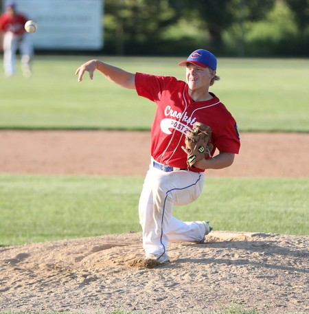 In the bottom of the seventh inning, Joe Doda retired the first batter on a line drive to right field and Win-E-Mac said they had his pitch count at 107 pitches. Crookston only had Doda for 101 pitches, but the home team’s count is the number they had to go by and Crookston had to make a pitching change. Jacob Miller walked the first batter he faced on four pitches, but settled down and retired the next two batters and Crookston won the game 8-6.