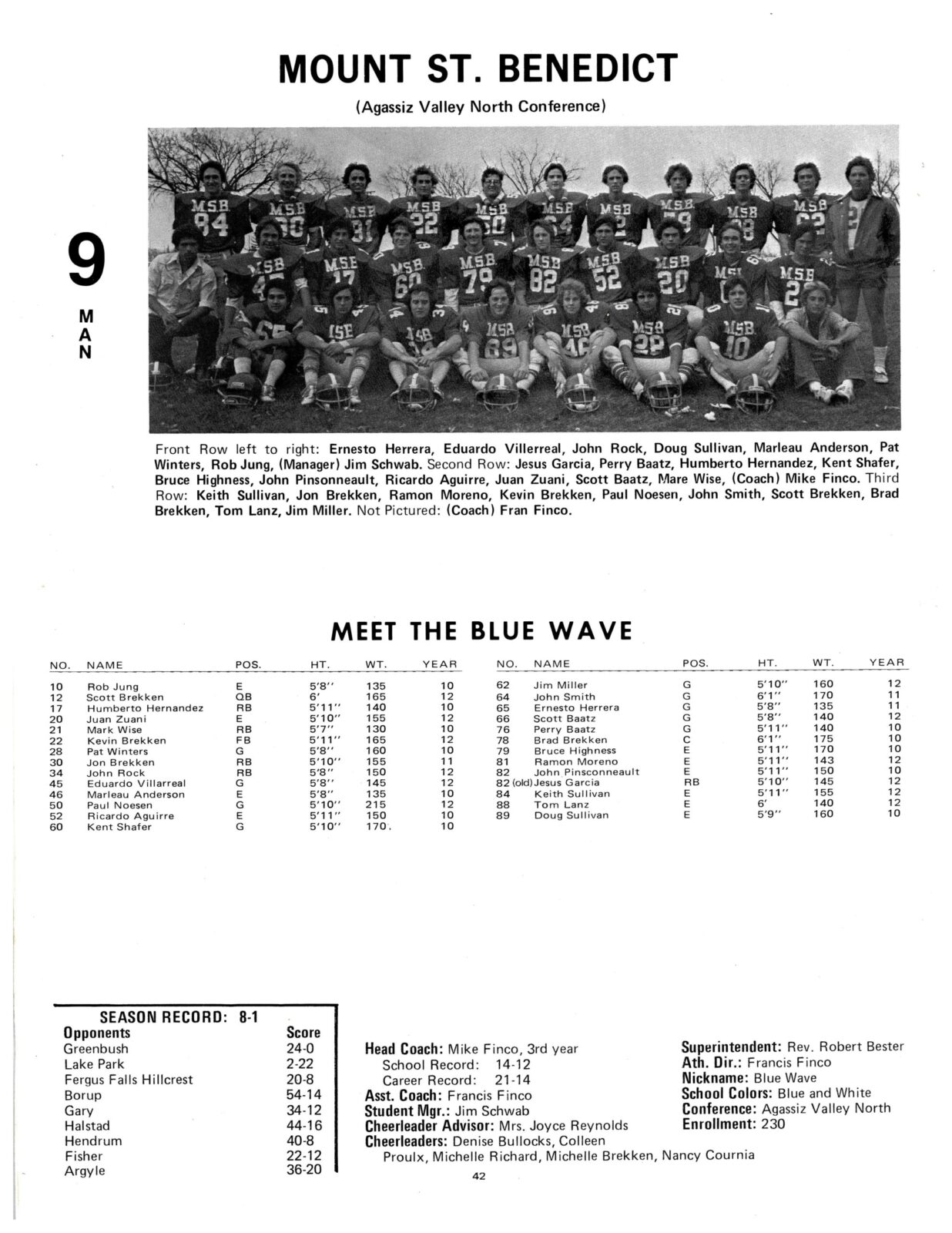The Mount St. Benedict was coached by Mike Finco (his 3rd year) and he was assisted by Fran Finco (who was also the A.D.).