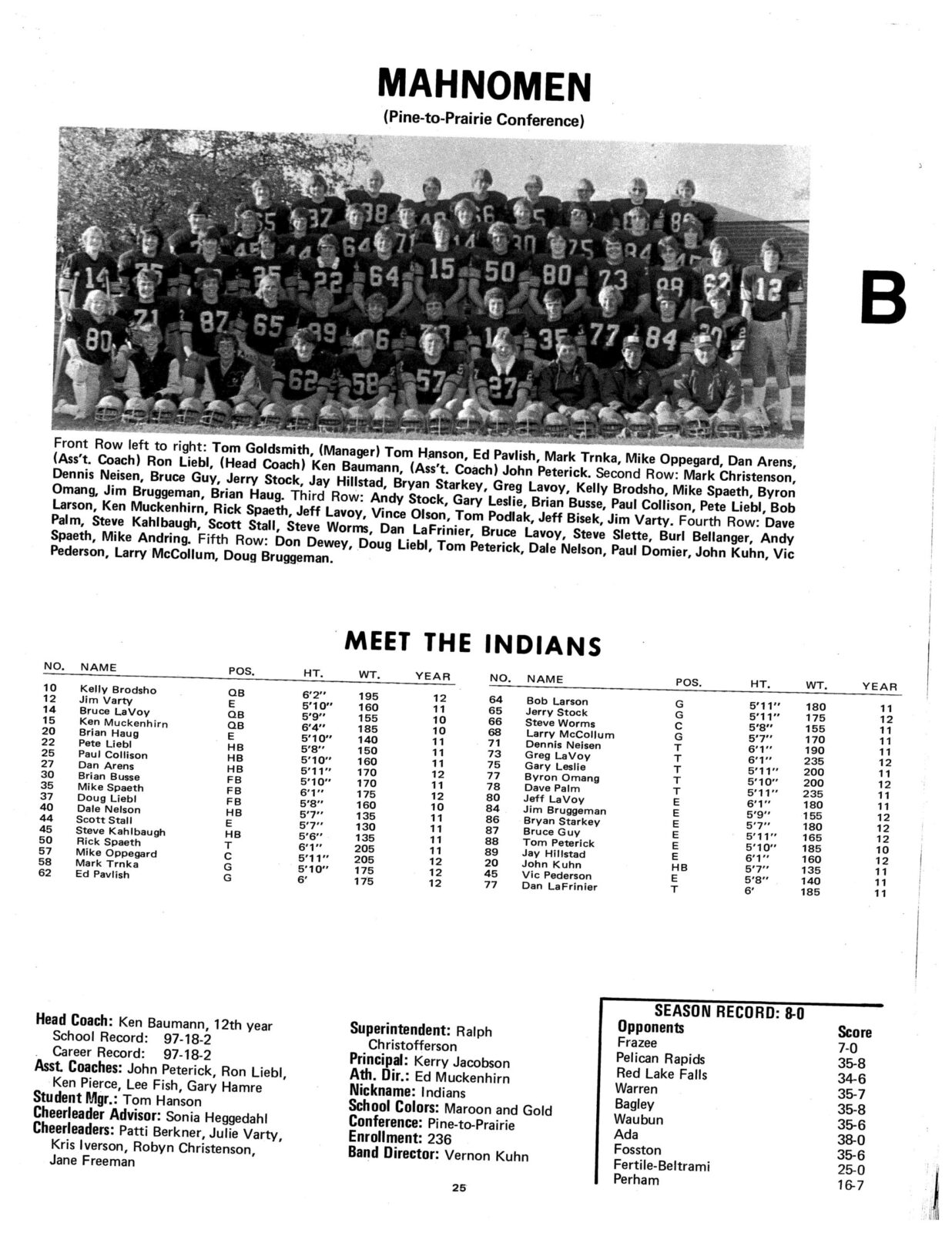 The crazy thing that many might not remember is that the Catholic School in Crookston, Mount St. Benedict went to state in Nine-man the same year! The Mount’s enrollment was 230 and Crookston Central’s enrollment was 516.