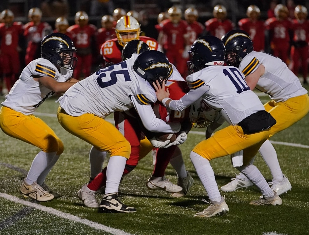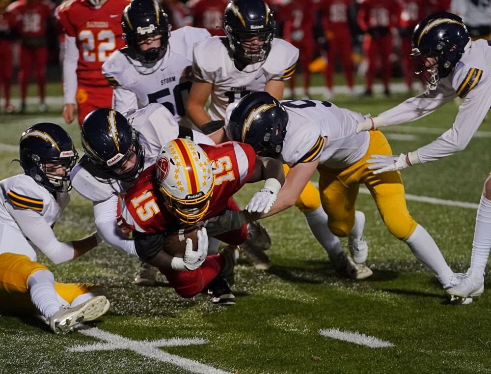 The Storm defense came out strong as MIB’s Micades Clines ran for five yards before Derik Dahl was hit for a loss of two yards. The next play was an incomplete pass and the Rangers were forced to punt.
