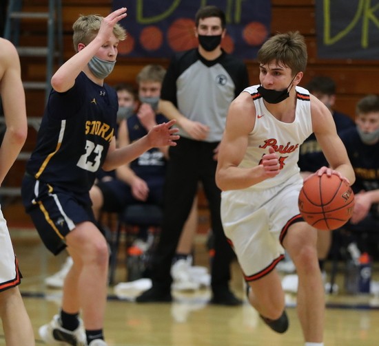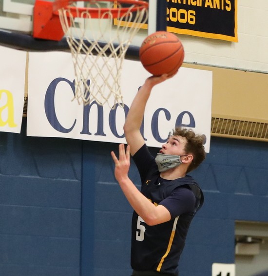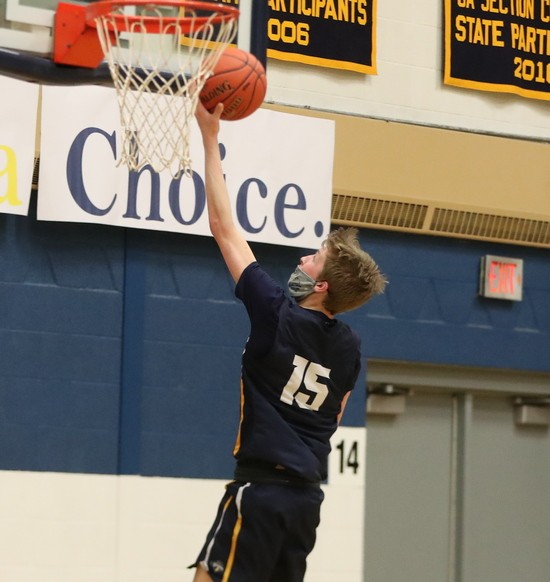 Stephen-Argyle regained the lead with back-to-back baskets from Zach McGlynn and Kroll for an 11-10 lead. The lead exchanged hands two more times and the teams were tied at 27 when the Ponies’ Braylee Schroeder made a three-pointer before the buzzer. “Brandon (Kroll) seemed to have big baskets in the first half,” said Coach Lubarski. “They were kind of the answer to big shots. We also had some big rebounds and guys stepping up and making plays. It was a good first half.”