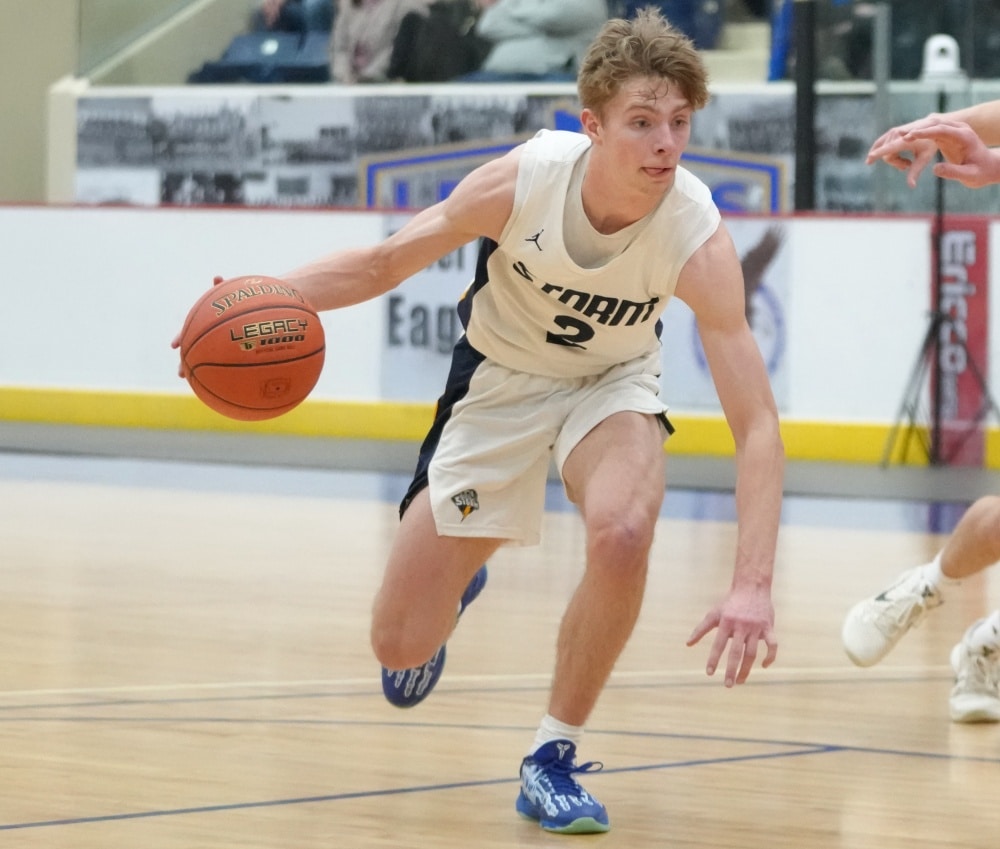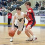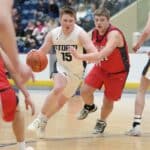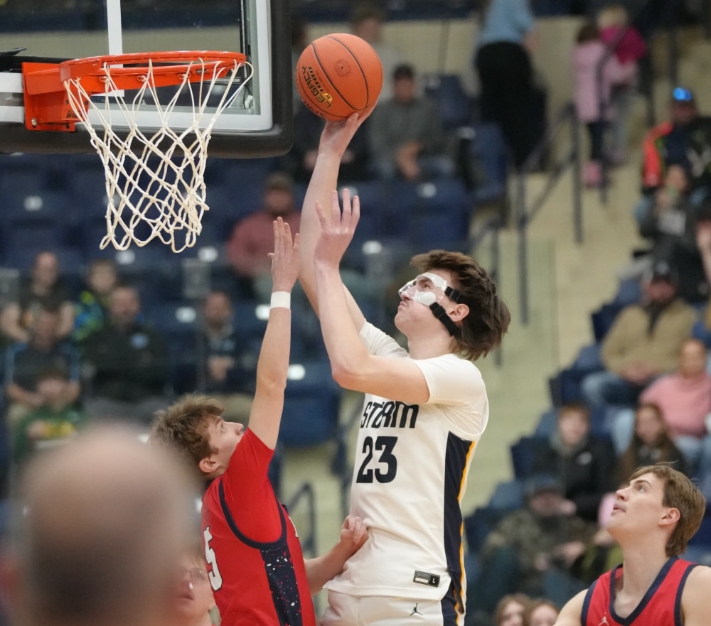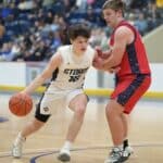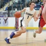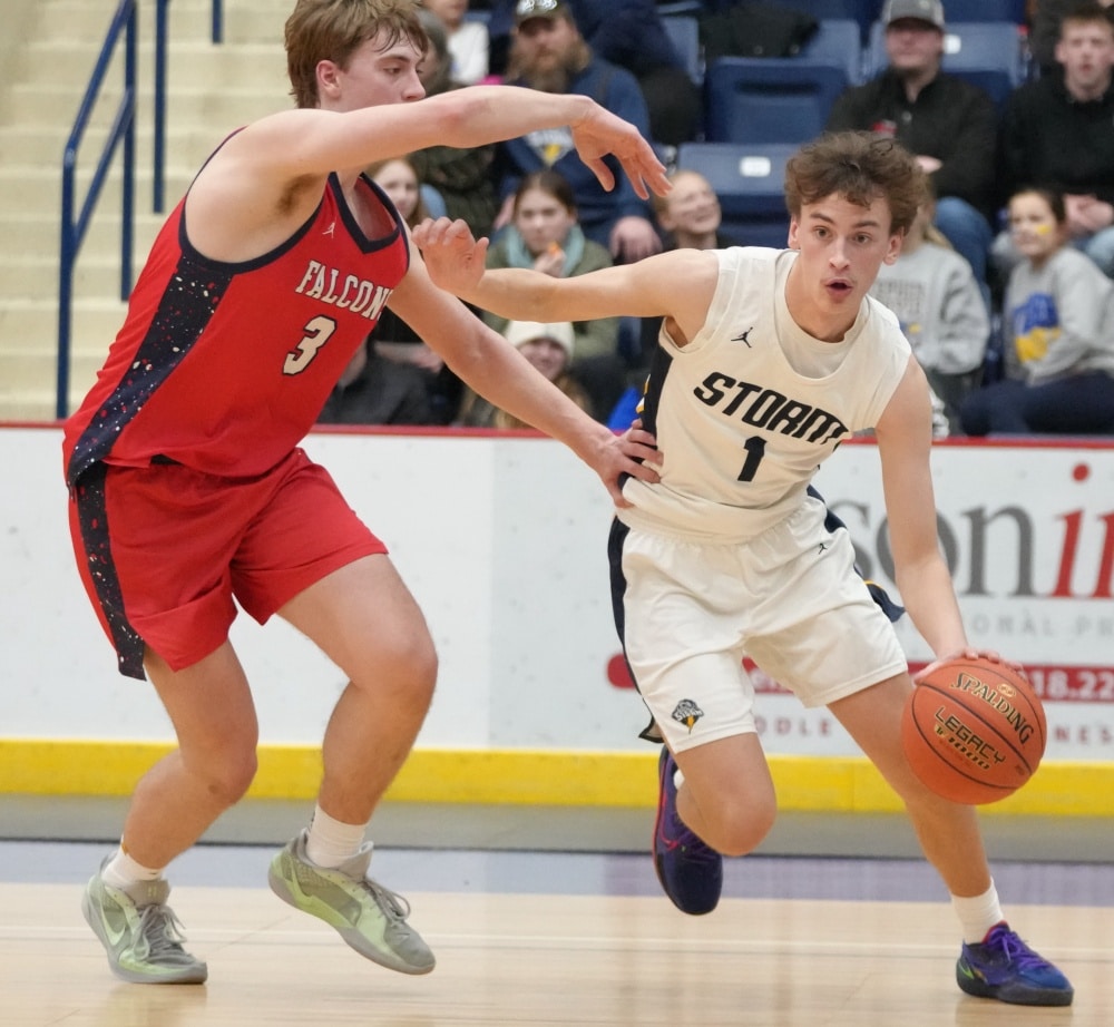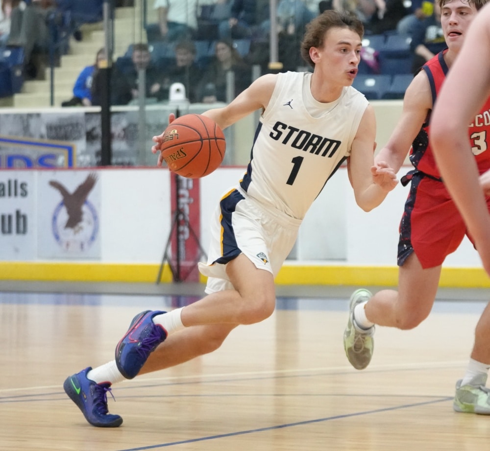Stephen-Argyle got off to a good start by scoring the first six points of the game with baskets from Caden Pagnac, Jake Carlson, and Rayden Woinarowicz for a 6-0 lead. Fertile-Beltrami’s first points came a little over two minutes into the game when Bryer Strem scored, followed by a bucket from Steven Sather to spark a 10-4 run with a Strem steal and two free throws, and back-to-back baskets from Caleb Sather to tie the game at 10-10 six minutes into the half. The teams exchanged baskets for a tie at 12 before Stephen-Argyle’s Dylan Widner buried a three-pointer and Raydon Woinarowicz added a basket for a 17-12 lead. With 9:51 left in the half, Stephen-Argyle was called for a technical foul for having six players on the court after a timeout. Fertile-Beltrami’s Strem made one free throw and on the same possession the Falcons Gullickson made a basket to bring the Falcon’s within a 17-15 deficit halfway through the half. Stephen-Argyle responded with a 10-2 run with Anders Thompson starting the run with a basket, Pagnac added a basket and after a made Storm free throw, Shay Setterholm made a three-pointer and followed with a reverse layup for a 27-15 lead with 4:20 left in the half. Fertile-Beltrami picked up its defense and didn’t allow a Storm point in the final four minutes and they had a Strem basket followed by a Caleb Sather three-pointer and Stephen-Argyle took a 27-20 lead into halftime.
