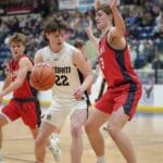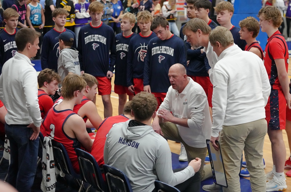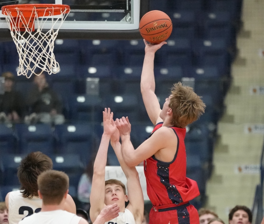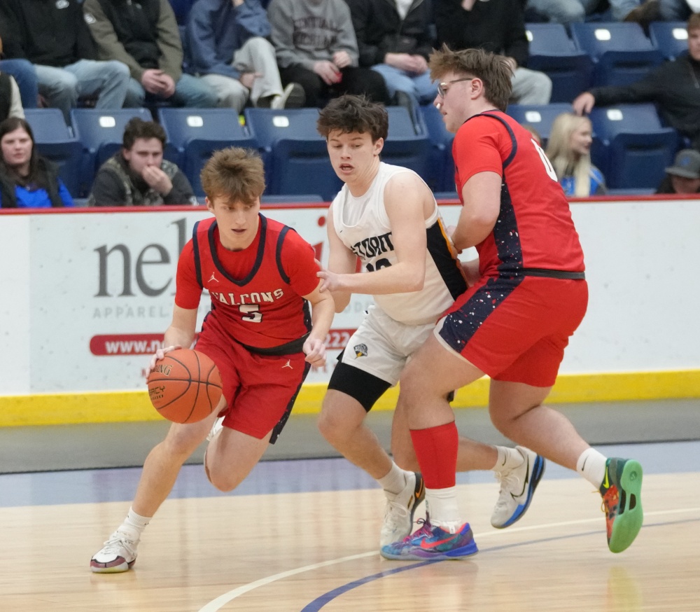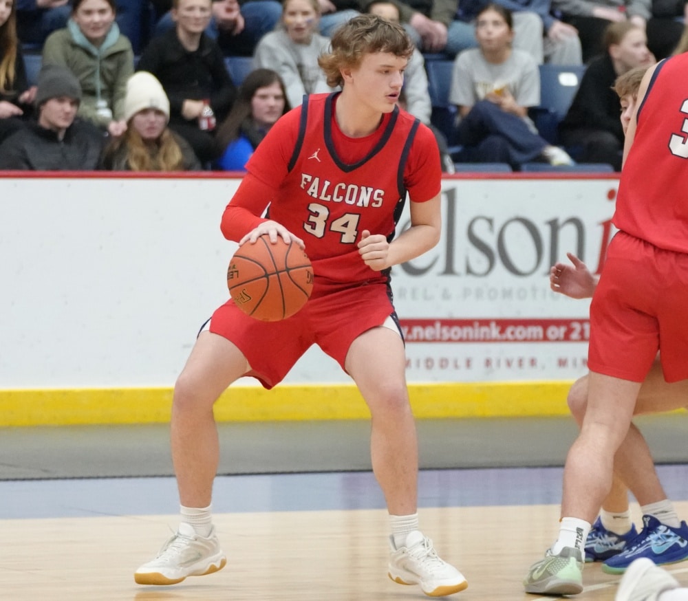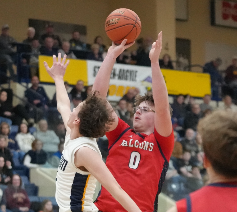 Fertile-Beltrami started the second half by scoring the first four points with a Gage Henrickson free throw and a Drew Gullickson three-pointer to get within a 27-24 deficit. Stephen-Argyle responded with a Pagnac free throw and a Thompson three-pointer for a 31-24 lead two minutes into the half. With the Storm leading 32-26, the Falcons’ Gullickson made a three-pointer, but Stephen-Argyle’s Dylan Widner and Shay Setterholm made three-pointers for a 38-29 lead with 9:25 left in the half. Fertile-Beltrami’s Gullickson answered with a 15-2 run. The run started with Gullickson scoring five points, and after a Storm basket, Gullickson buried another three-pointer. The Storm turned the ball over, and Henrickson scored in the paint. After another Storm turnover, Henrickson grabbed a Falcon miss and scored again, and the run was capped with a Gullickson basket for a 44-40 lead with 4:23 remaining. The lead was the first for Fertile-Beltrami in the game. The teams traded threes, with the Storm getting threes from Dylan Widner and Setterholm to take a 46-44 lead. Fertile-Beltrami’s Caleb Sather made a three-pointer to give his team a 47-46 lead with 2:43 remaining, and the final minutes were full of excitement.