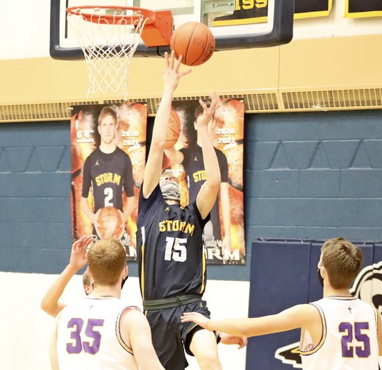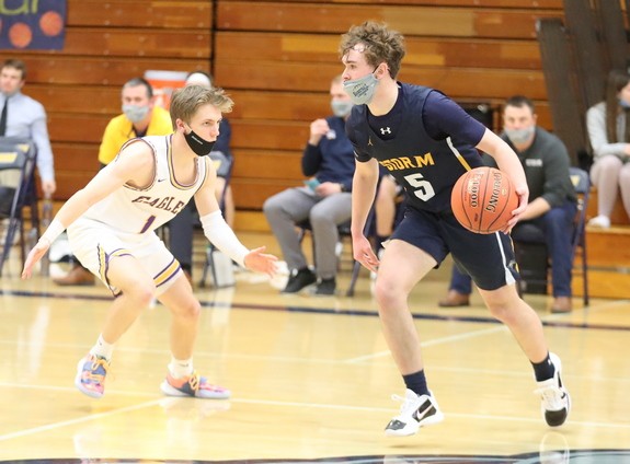 The game was pretty much decided in the first nine minutes of the game as Stephen-Argyle came out strong on the defensive end while they scored the first 12 points of the game. Colten Pagnac started the scoring with a basket a minute into the game. Brandon Kroll added four straight points in a 30-second span before Jason Lindgren scored. The Storm kept going and Kroll added another basket and Kole Szczepanski finished the run two points for a 12-0 lead with 10 minutes left in the half.