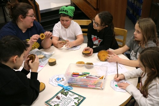 Students in a variety of grade levels at Highland School have been getting together to learn about agriculture from staff and students from the University of Minnesota Crookston (UMC) in an after-school program called “Ag in the Classroom.” On Thursday afternoon, the students learned about forestry explains UMC Director of Outreach and Engagement Michell Christopherson. “Today’s project is all about forestry,” said Christopherson. “We really want the students to identify with their surroundings and the environment. Getting outside and checking out the trees is what we’re mostly focusing on right now is the age of the tree, how it starts as the roots with the sapling side of things, but also identifying the different leaves. And then, of course, identifying what habitat uses that as home, food, their sense of belonging within the forest or not. We’re hopeful the kids will learn a little bit more about how trees age and they can identify the size of a tree or at least the rings within the trunk to determine how old that plant is.”