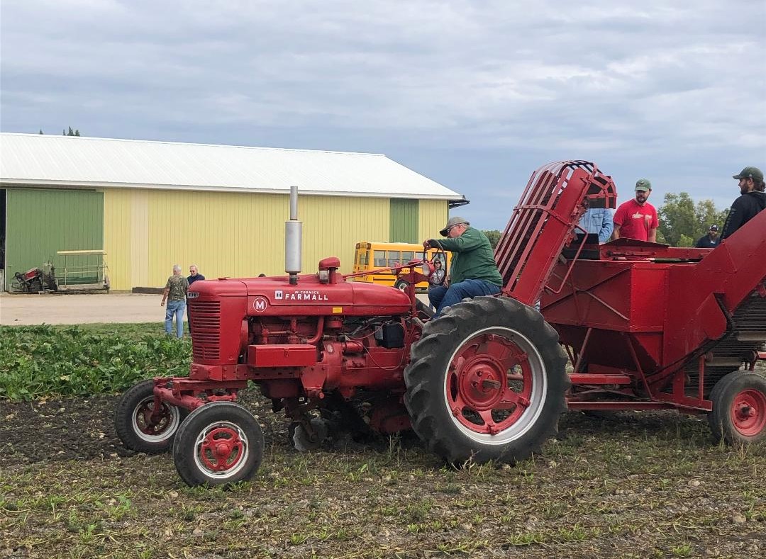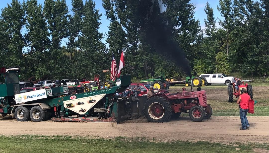The demonstration of harvesting Sugarbeets with antique equipment began at 11:00 a.m., and the tractor pull started at noon, lasting almost 7 hours with over 100 participants in 20 different classes.