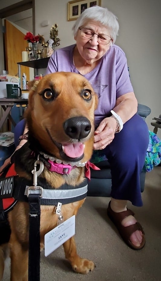 Lois Brooks just has a way with the visiting dogs at Benedictine. “It is fun to get to pet the dogs! I love my girl Chewy. She is just a peach, and I look forward to visiting my son every Sunday to see her. She is a Cocker Spaniel and so good!” Lois shares a picture on her phone and points out a Chewy toy animal look-alike in her bedroom, carefully wrapped in a blanket. “She is always close to my heart.”