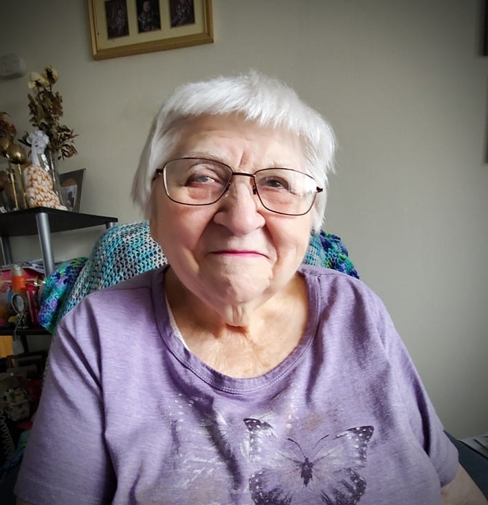 Lois still has a green thumb as her plants flourish in her cheerful apartment. “I stay busy embroidering too. I made 32 pillowcases one Christmas.”