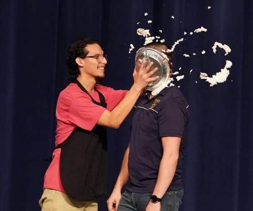 Sanchez and the other contestants had practiced over the week to learn the opening number and prepare for the Mr. CHS competition. “The girls of the Student Council helped us. We were a little hesitant, but we did really well. We practiced about an hour each day besides Wednesday when we had no school,” Sanchez explained. “Thankfully, yesterday and today, we were here for about two hours getting everything down to make sure there were no mistakes, and we were all ready. I want to give a shout-out to Mr. Torgerson for getting cream pied in the face.”