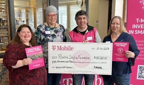 Earlier today, in the Crookston Public Library Sunroom, T-Mobile announced Crookston as one of its latest 25 Hometown Grant recipients and awarded a $50,000 grant to go toward rebuilding the steps of the 100-year-old historic Cathedral of the Immaculate Conception. The project was submitted by the Prairie Skyline Foundation, a non-profit organization dedicated to restoring historic Crookston buildings for the community.