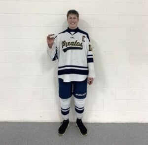 Crookston Pirate Boys Hockey routs Princeton, Garrett Fischer scores 100th career point