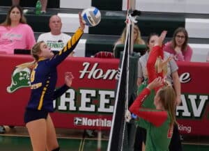 The East Grand Forks Green Wave Volleyball team started the match on a 6-1 run, and they were able to use solid net play, good serving, and scrappy defense to beat the Warren-Alvarado-Oslo Ponies 3-1 (25-16, 22-25, 25-19, 25-14) in the season-opening match for both teams. FIRST SET East Grand Forks came out strong and […]