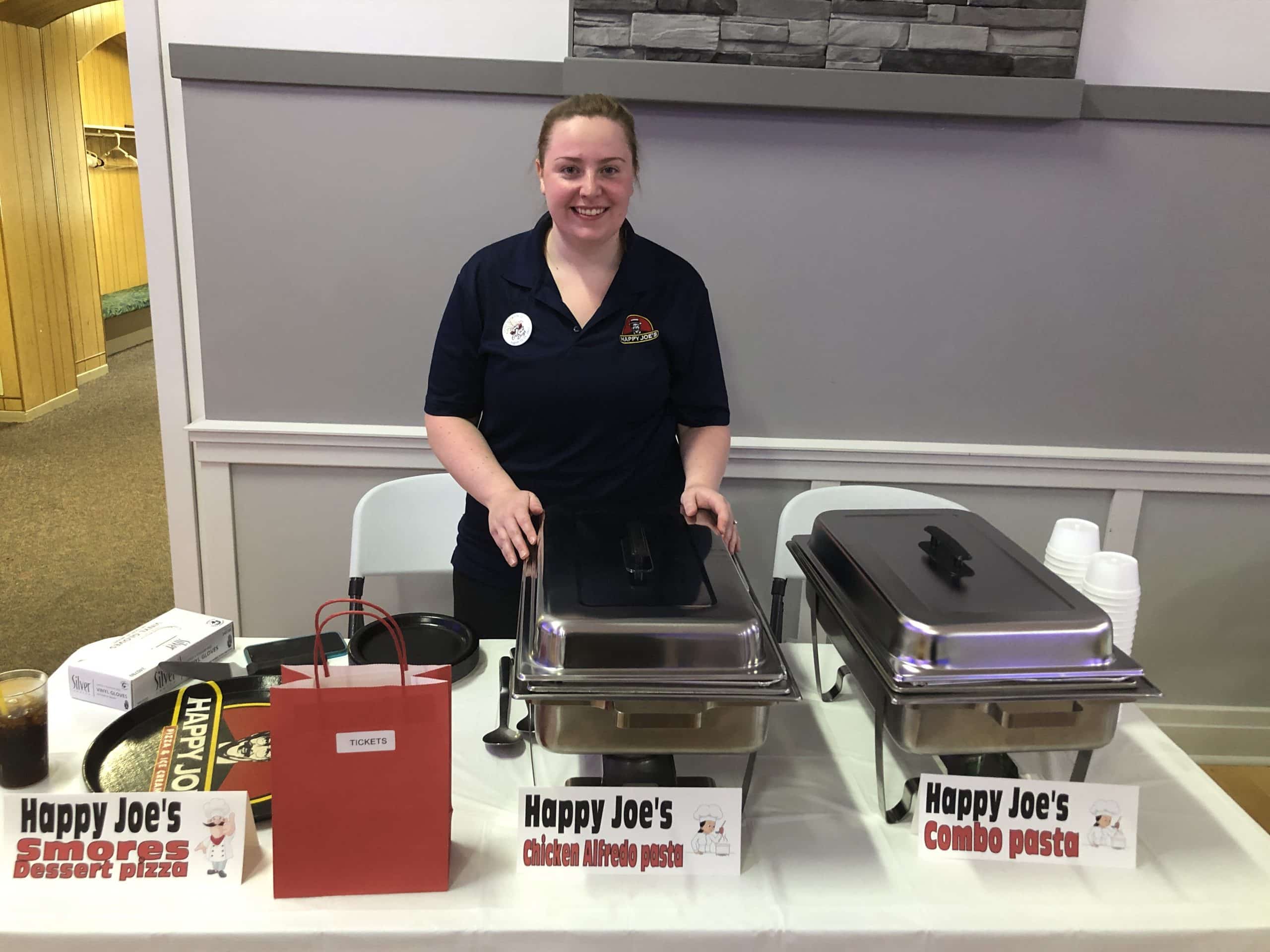 Happy Joe’s Pizza serving their Smores Dessert pizza, Chicken Alfredo pasta, and combo pasta