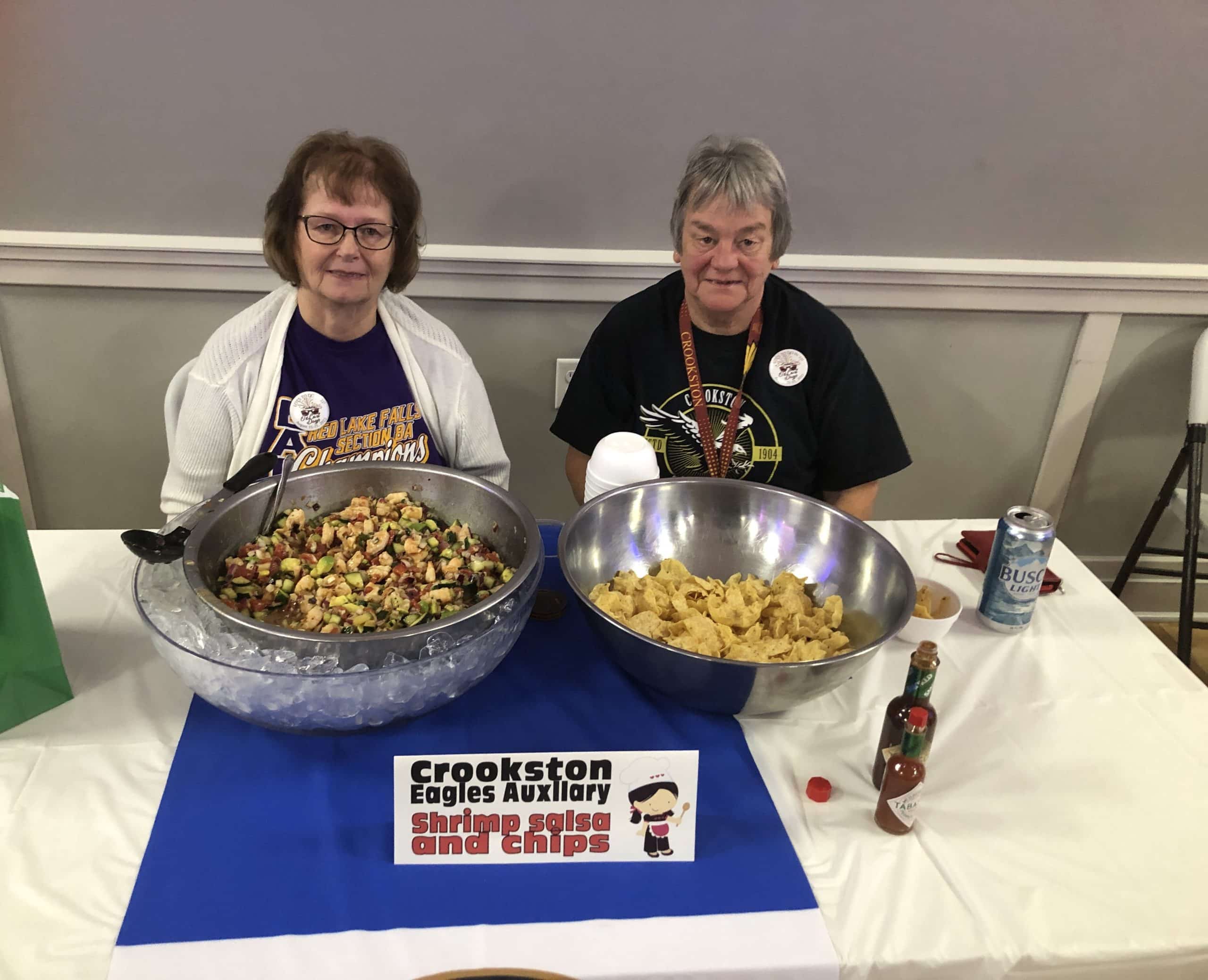 Crookston Eagles Auxiliary serving Shrimp salsa and chips