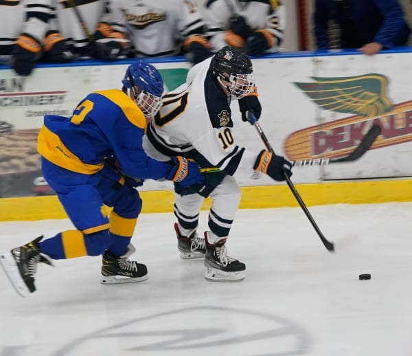 The Prowlers would erupt in the second period and score four goals to take a commanding 6-0 lead. The first one came with 12:24 remaining in the frame, and it was Tysen Loeffler’s second of the night. He skated in past the entire Pirates defense and backhanded one by Bailey. Thirteen seconds later after the faceoff win, Loeffler would complete the hat trick and give the Prowlers the 4-0 lead, and they never looked back after that. Thief River Falls was executing at a high level and was in sync for the entire period. Scoring the other goals for the Prowlers later in the period were Braydin Lund, and Jaxon Hams. The Pirates would get one excellent scoring chance as Michael Bochow would knock a puck away from a Prowler player and skate the other way on a breakaway. He would be turned away however by the Thief River Falls goaltender Conner Roff, keeping the shutout intact. Right at the end of the period, the two teams would get into a scrum, and after the officials worked it out, the Pirates would get their first Power Play of the night which would carry over into the final frame.