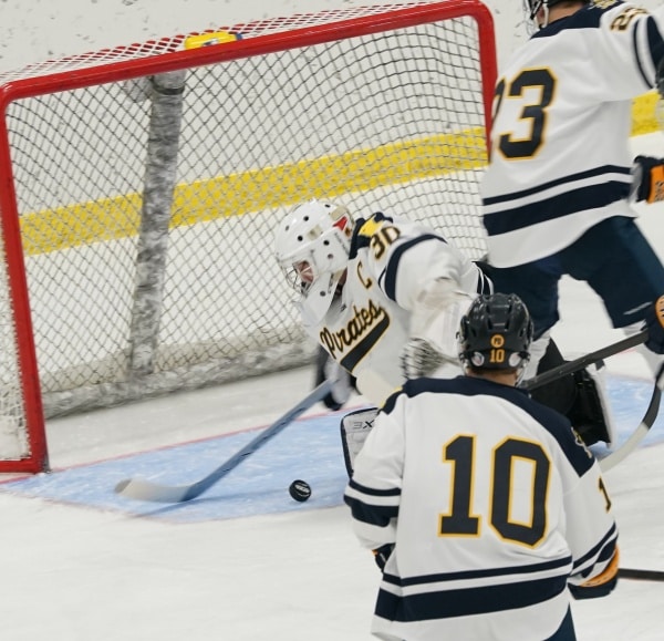 The first few minutes of the game gave each team one or two scoring chances but both starting goaltenders were up for the task and kept the game 0-0. The Prowlers continued to apply pressure and would eventually score the first goal of the night after a Pirates turnover that resulted in a breakaway. Tysen Loeffler would skate in and before Thor Harbott could race back and defend, Loeffler would beat Jaren Bailey to give the Prowlers the 1-0 lead. A few minutes later Kadin Edwards would be called for a trip to put Thief River Falls on a Power Play. Crookston spent a lot of time in recent practices working on their special teams and it paid off on this penalty kill, as the Pirates would keep the deficit at 1-0 while getting back to even strength. Crookston would have a few decent chances in front of the net and in transition throughout the period but could never quite execute. Michael Bochow would have a breakaway get turned aside and the Pirates top line would have a chance or two but they would come up empty every time. Thief River Falls would extend the lead with under 3:00 minutes remaining in the period after a shot got blocked and came right to a Prowlers skater who would beat Bailey five hole. That would make it 2-0 and the score would remain that way into the first intermission. Thief River Falls outshot the Pirates 14-4 in the first frame on their way to the 2-0 lead.