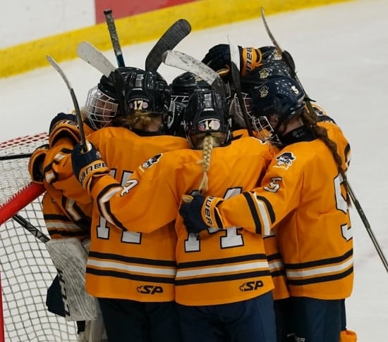 Northfield jumped offensively and forced the Pirates into icing several times because they were tired. Northfield had a couple of chances to tie the game, but Freiji stopped the threats. Northfield pulled their goalie with under two minutes to go, and with under a minute to go in the game, LaPlante made her backhanded shot that just made it inside the left post, with 43 seconds to go, the insurance open net goal made it 4-2. “That was a clutch goal Emma scored for us,” Coach Meyer said. “She kept composed, aiming and throwing it out there.”