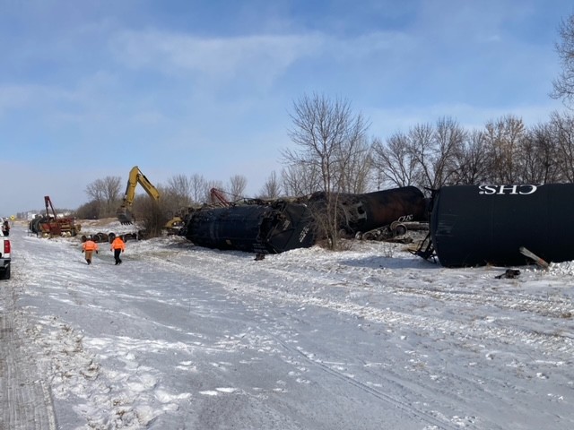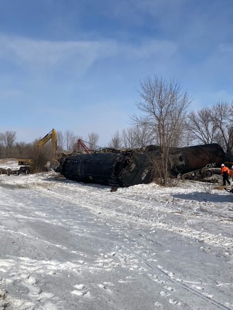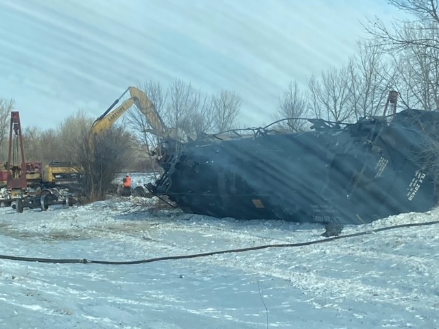On Monday, February 8 the Polk County Sheriff’s Office responded to a train derailment near Highway 75 and County Road 252 north of Crookston. Deputies arrived and located multiple rail cars scattered along the tracks and ditch. A total of nine of the train’s 14 cars were derailed. Several cars were leaking non-hazardous material. There is no concern for public safety at this time and no injuries were reported as a result of the derailment.