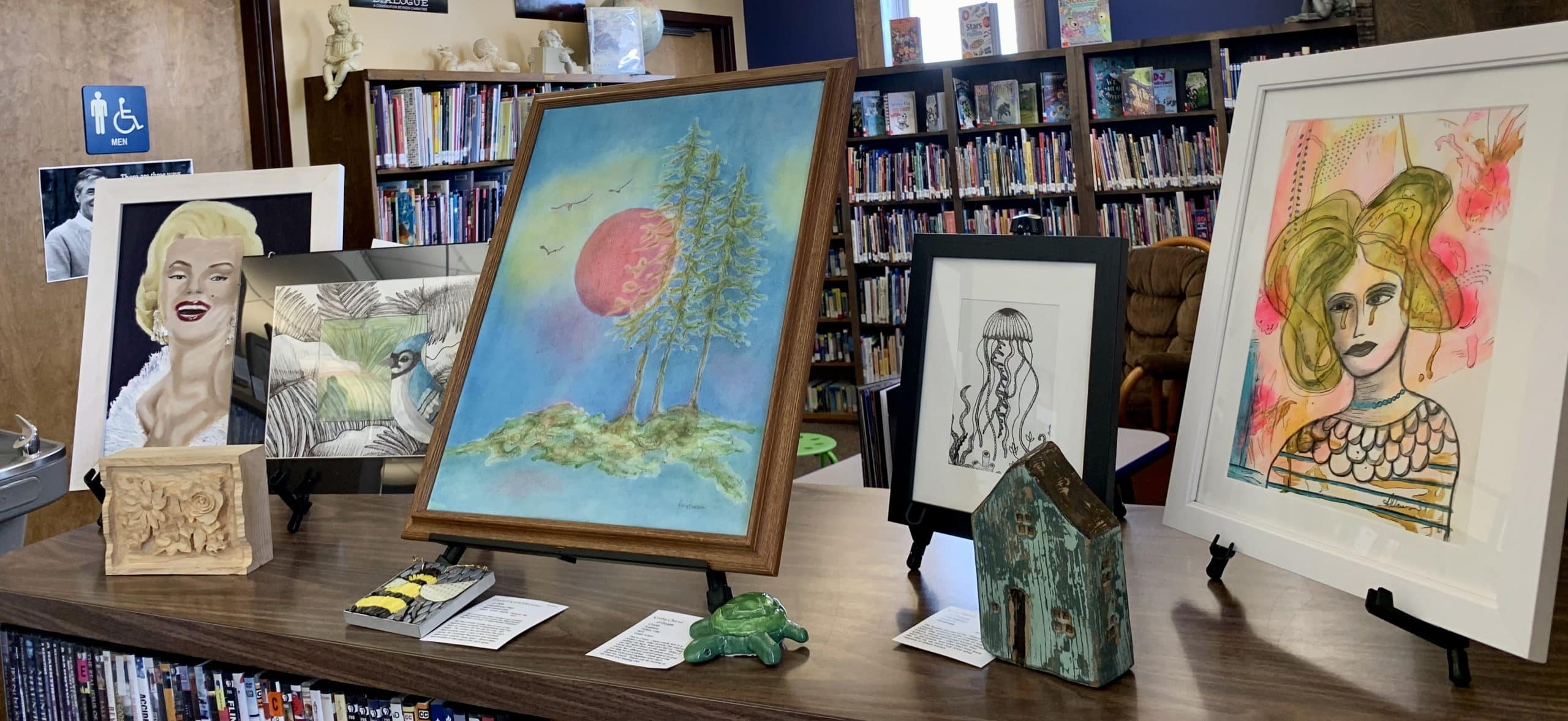 The Northwest Minnesota Arts Council (NWMAC) sponsors an annual Traveling Art Exhibit, which visits northwest Minnesota communities throughout the year. The exhibit includes 17 original art pieces by regional adult and student artists chosen from works submitted for the annual juried exhibit. The exhibit is currently at the Hallock Public Library until June 16. Please stop by to see these works of art, as this is the first stop for this traveling exhibit. Some of these pieces of art are for sale.