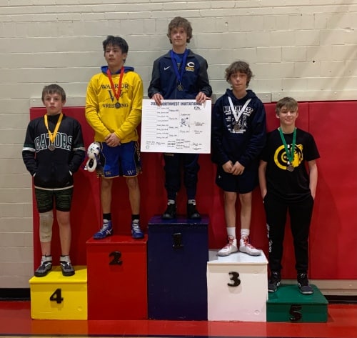 The Crookston Pirate Wrestlers had six wrestlers in the championship match with three of them (Evin Trudeau, Ethan Bowman, and Ethan Boll) and all 10 placed on their way to a second-place finish at the 51st annual Northwest Invitational tournament at Fertile-Beltrami High School. Thief River Falls won the team championship.