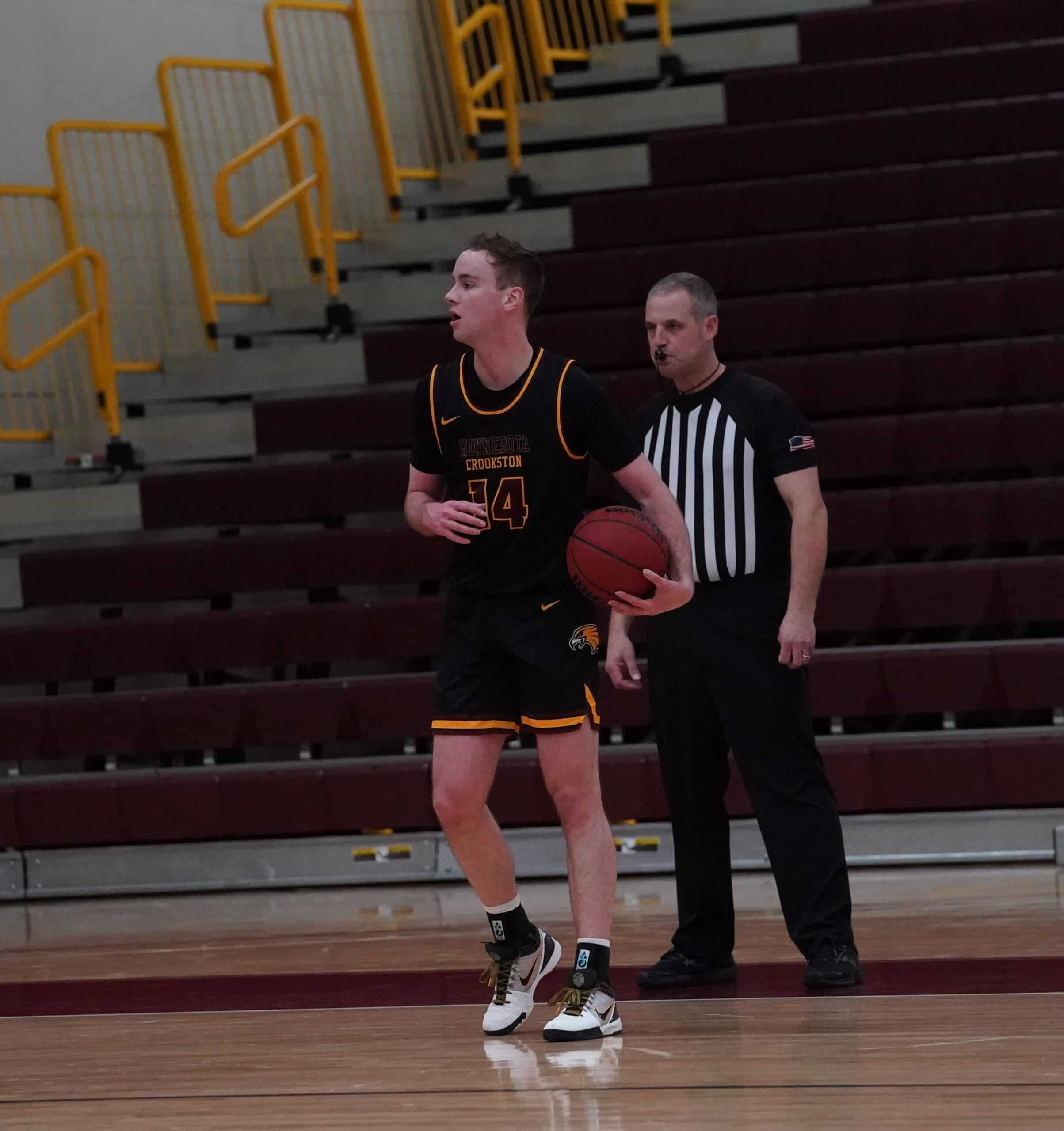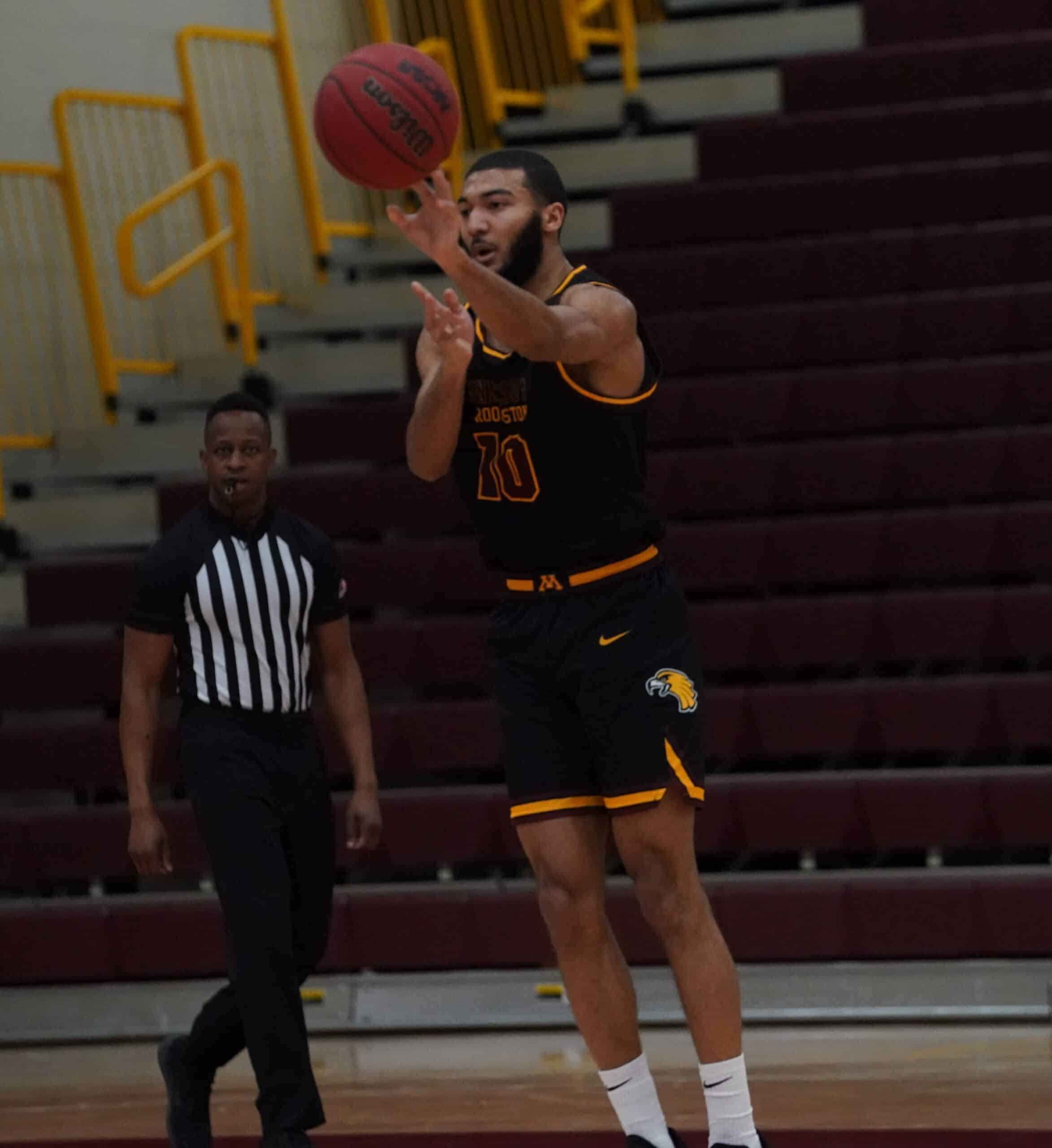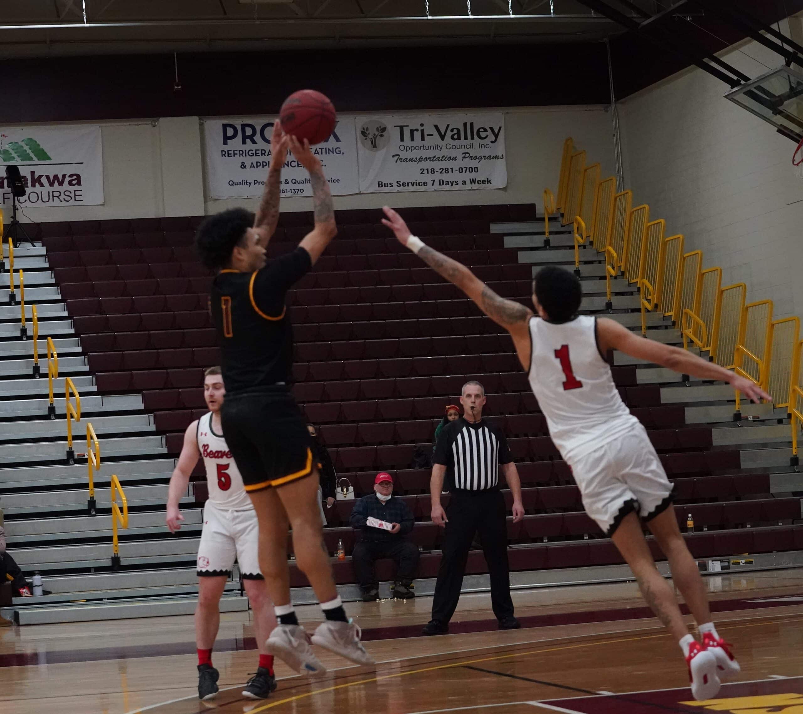 The University of Minnesota Crookston (UMC) Golden Eagles Men’s Basketball team welcomed the Minot State Beavers into Lysaker Gymnasium on Saturday evening for a crucial NSIC conference game. The two teams met earlier in the season with Minot State winning 88-83. UMC was hoping to turn the tides in this game, but Minot State used two first-half runs and took care of the basketball to come away with an 88-68 win over the Golden Eagles. “We talk about energy, toughness, and rebounding, and I thought we lost all three of those categories today,” said UMC Head Coach Dan Weisse.