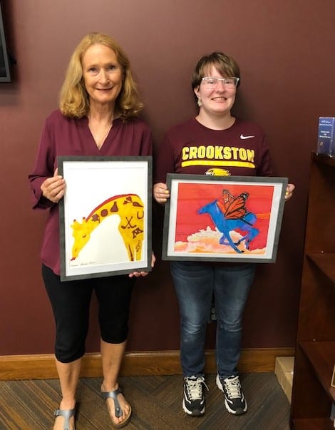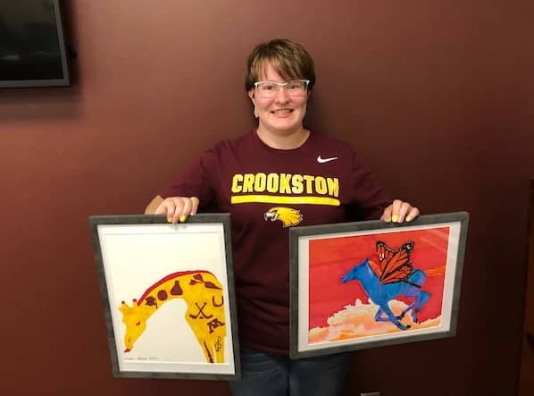 University of Minnesota Crookston alumna Vanessa Robbins gave back to her alma mater for everything it gave her by providing two pieces of art that will be displayed on campus in the Office of Admissions.