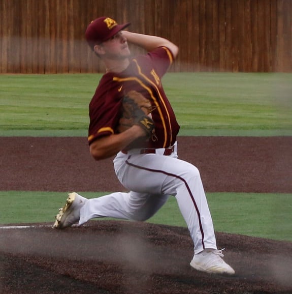 In the top of the fourth, the Golden Eagles got on the board for the first time with a couple of runs. After the first two batters were retired, UMC brought out their two-out bats with Will Zimmerman (Sr. Park River, ND) reached on an infield single and got to second on a throwing error. Scott Finberg (Sr. Stillwater) was hit by a pitch and Jake Hjelle (Fresh. East Grand Forks) singled to right to score Zimmerman and a bobble in right field allowed Finberg to score all the way from first to make it 7-2.