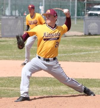 In the top of the fourth inning, Bobby Chu (Jr., Redwood City, CA) doubled down the left field line to start a rally before Scott Finberg (Jr., Stillwater) doubled to left field putting runners on second and third base. Landyn Swenson (Jr., Devils Lake, ND) singled to score both runners in scoring position giving UMC a 4-2 lead. Bryce Jorgen (Jr., Thunder Bay, Ontario) singled up the middle continuing the rally and pushing Minnesota Crookston’s lead to 5-2 before Reed Hjelle drove Jorgenson in with a single to center field making it 6-2.