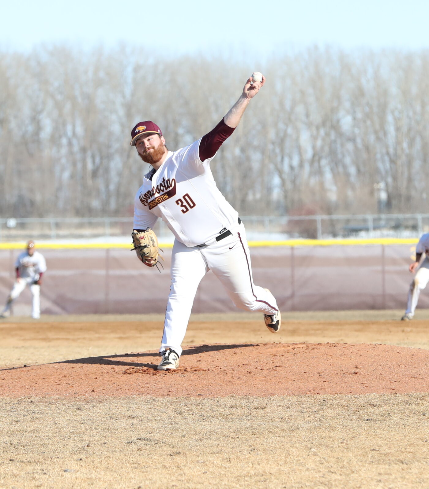 Minnesota Crookston proved unable to rally in the final three innings, failing to score after the second inning and falling 3-2. “No adjustments,” said Gust explaining the lack of offensive production. “We got up there the same way all the time. We’re capable of some really good things offensively, but if we’re feeling sorry for ourselves because of the last at-bat and not doing the little things and making adjustments when we need, that’s going to happen. We’ve got to be tougher. Our first game at home, you’d think we’d come out with better approaches, better adjustments. Everywhere, we weren’t really good on the mound, we were terrible defensively, we weren’t good offensively and that’s what you get when you’re not good anywhere.”
