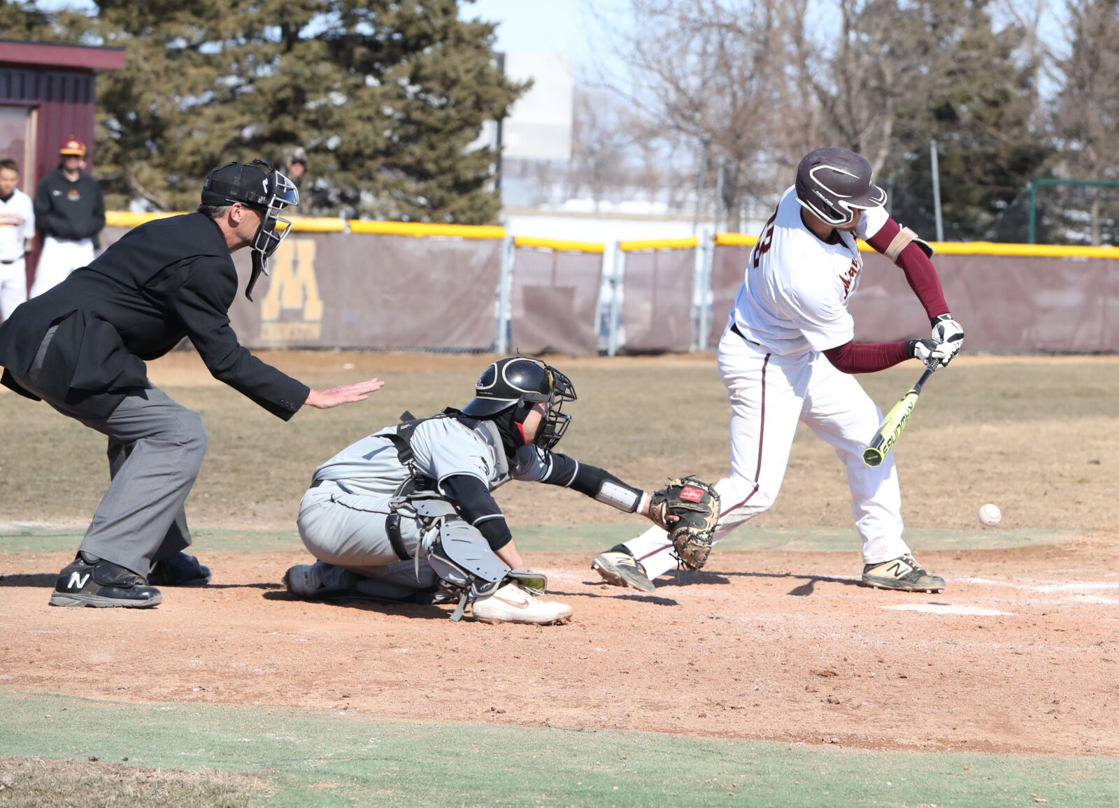 The University of Minnesota Crookston (UMC) baseball team dropped their first two home games of the season losing 10-1 in game one and 3-2 in game two in an NSIC doubleheader played at the UMC Baseball Field.