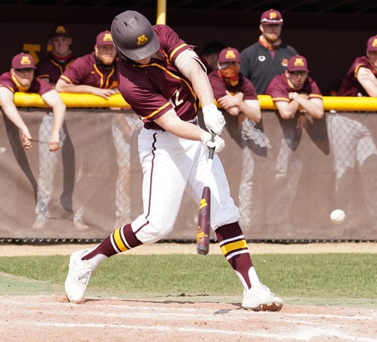 The Golden Eagles got two more runs in the bottom of the fourth to add back on to their lead. Swenson doubled down the line to get things started for UMC. After two quick outs, it looked like Swenson would get stranded in scoring position. But, UMC’s strong two-out scoring came up big once again. The next two hitters were hit by a pitch and Brock Reller (Jr. Grand Forks, ND) and Finberg worked back-to-back walks to bring in two more runs.