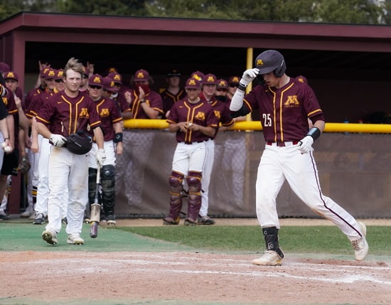 The Wolves got a couple of runners on with a walk and error with one out. However, Jake Dykhoff (Jr. Wadena), the UMC starting pitcher, settled in with a couple of strikeouts for the second and third outs. “He is our rock,” said Golden Eagles Head Coach Steve Gust. “He is our go-to guy.”