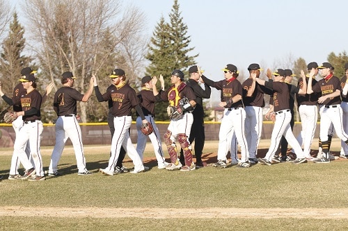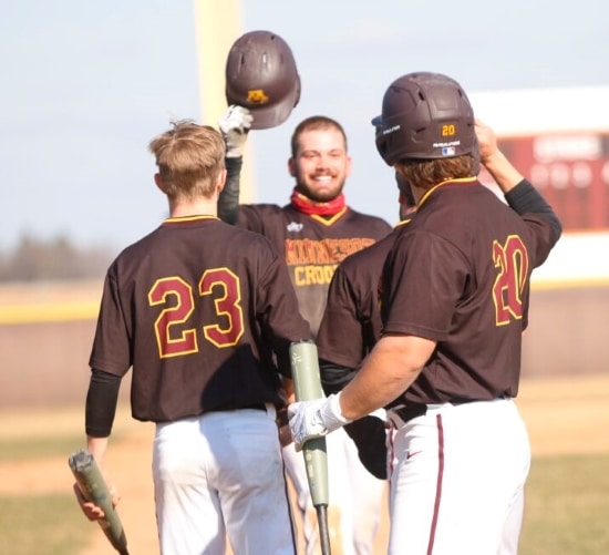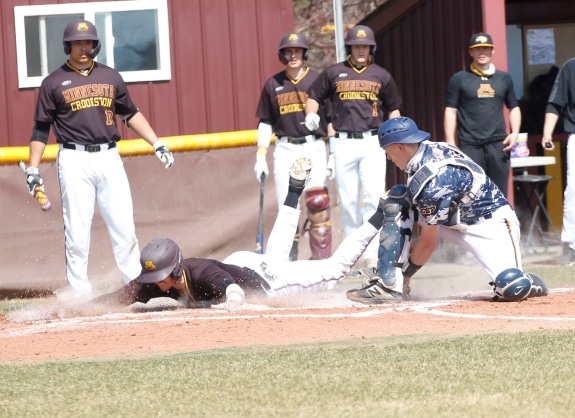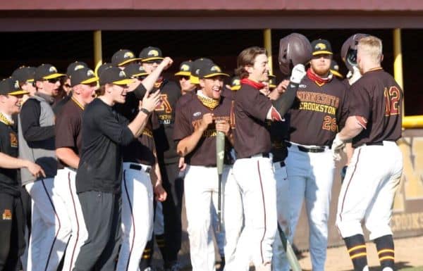 The University of Minnesota Crookston only had four hits in the first game and found a way to win 4-2 and in the second game they had two home runs to win 6-3 to sweep the Concordia-St. Paul Golden Bears in a Northern Sun Conference doubleheader played in Crookston.