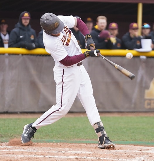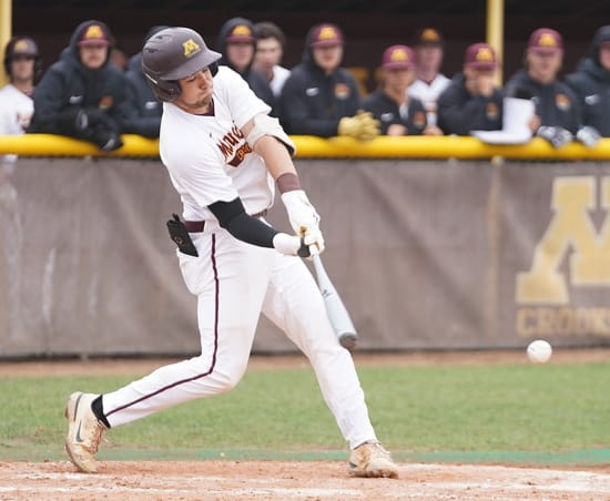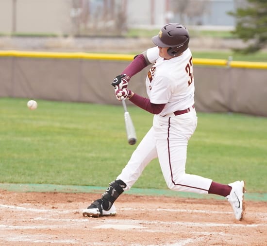 The University of Minnesota Crookston (UMC) Golden Eagles Baseball team used a solid offensive, defensive, and pitching performance to beat the University of Minnesota Duluth Bulldogs 12-4 in the first game and 8-5 in the second game of a Northern Sun Conference doubleheader played on a cool and windy day in Crookston.