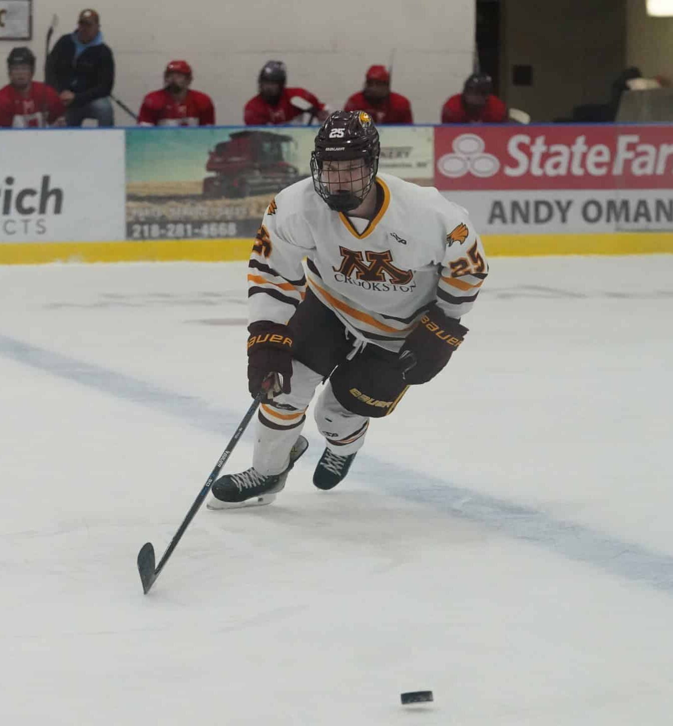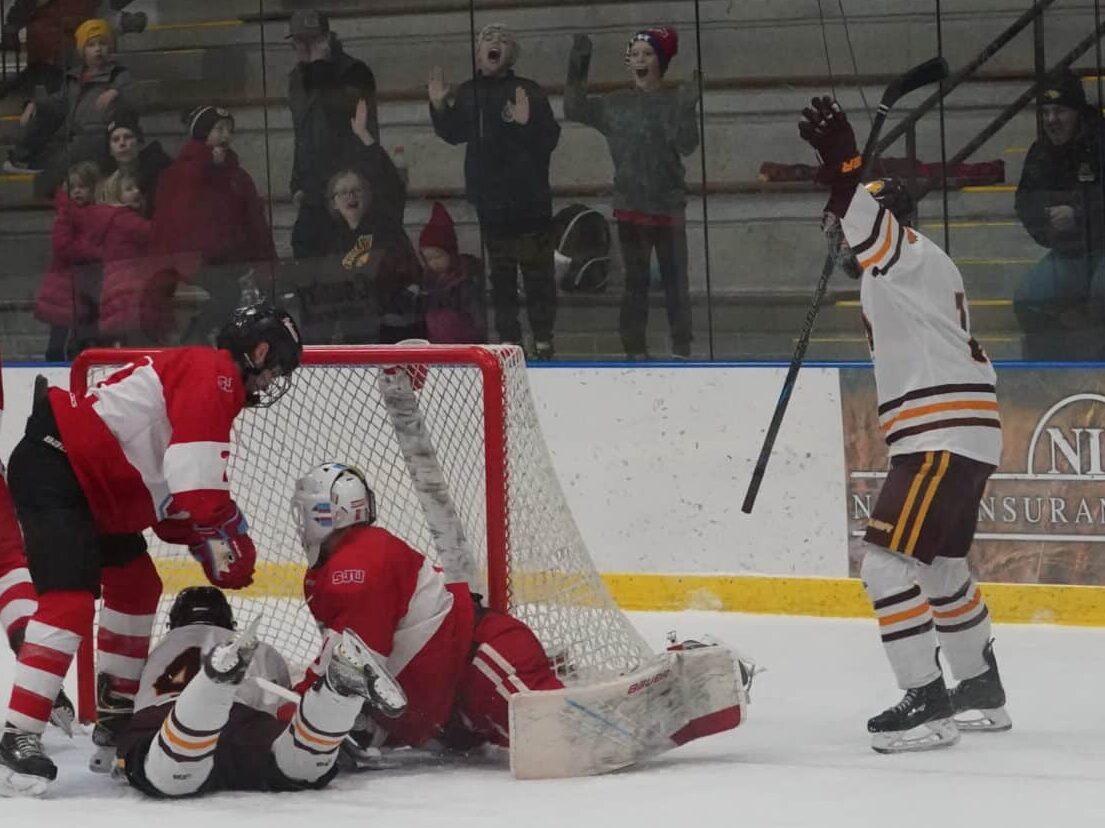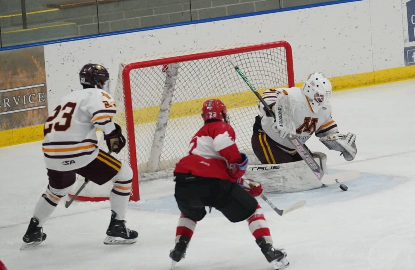 The University of Minnesota-Crookston men’s club hockey team soared to a 13-0 win over Saint John’s University at the Crookston Sports Center Friday evening. UMC outshot the Johnnies 70 to 10 in the contest.