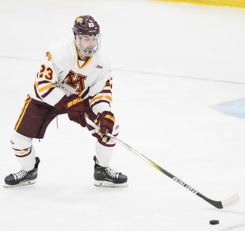 In the second, UMC would get off to a good start as Logan Syrup buried a goal for the Golden Eagles to extend the lead at 3-1. The Lumberjacks fought back, as Leighton Holstein scored just a minute and a half later to pull them within one at 3-2. UMC responded as Nathan Ayotte scored his second goal of the game to make it a 4-2 lead for the Golden Eagles. Ayotte would get the hat trick later in the period to make it 5-2 and give UMC a comfortable lead heading into the third.